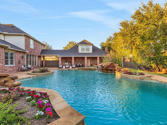 Tucked away on a quiet cul-de-sac street, this exceptional 5-bedroom, 5-full-bath + 2-half-bath home offers the perfect blend of luxury, comfort, and thoughtful design. With TWO PRIMARY SUITES —one up and one down—each with spa-style baths, dual vanities, and spacious closets, the layout is ideal for multi-generational living or long-term guests. The living room and private study showcase custom built-ins, while the chef’s kitchen features Taj Mahal quartzite counters, double ovens, a pot filler, and a beverage station with a wine fridge. A dedicated media room sets the stage for cozy movie nights, and the 600+ sq ft guest suite above the garage includes an oversized entertaining area and full bath. Outdoors, relax by the oversized resort-style pool and spa, surrounded by generous patio space and lush landscaping. A spacious 5-car tandem garage, roof replacement (June 2025), carpet replacement (2023), and impeccable one-owner care make this home truly unforgettable.