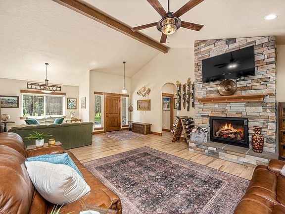 Beautiful, high-quality craftsman home in Lone Mountain Estates, situated on a 5.05-acre lot in one of Rathdrum's most desirable communities of homes on acreage—within the sought-after Lakeland School District. This thoughtfully designed 2,359 sq ft home features 4 bedrooms, or 3 bedrooms plus a versatile bonus room above the garage with a closet and half bath—perfect for a guest suite, office, or additional living space. The open-concept living area includes vaulted ceilings, a gas fireplace with stone accents, and a spacious layout ideal for everyday living and entertaining. The gourmet kitchen offers granite countertops, a large island, walk-in pantry, and quality finishes throughout. The primary suite provides a private retreat with a large walk-in closet, dual vanities, soaking tub, and a beautifully tiled walk-in shower. Enjoy the peace and beauty of the outdoors with park-like landscaping, a fully fenced backyard, and plenty of space to relax or explore. The natural setting a variety of local wildlife, offering tranquil views and a true North Idaho lifestyle. Conveniently located just minutes north of Hayden, this exceptional property combines comfort, privacy, and accessibility.