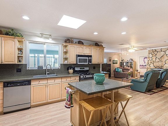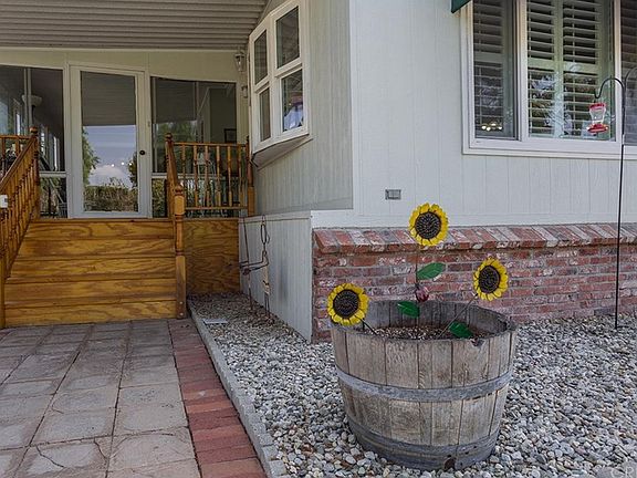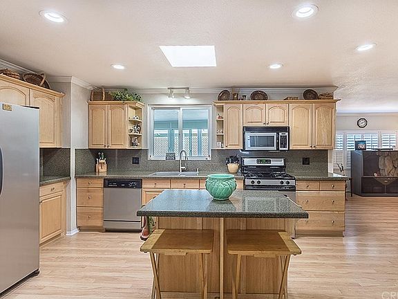 Beautiful 2 bedroom, 2 bath home located on the greenbelt with over 2,000 square feet of living area. This highly upgraded triple wide home is very clean and move in ready! Beautiful curb appeal with wood steps, brick fascia, a no maintenance yard and a lovely enclosed porch. Spacious open floor plan with lots of natural light features a large family room with vaulted ceilings and a separate living room with a beautiful stone fireplace. The kitchen has been completely remodeled with new cabinets, granite counters, recessed lighting, a center island, skylight, built in microwave and refrigerator. Other upgrades include dual pane windows, copper plumbing, 5 year old heater and A/C, plantation shutters, drywall throughout, crown molding and wood laminate flooring. Master bedroom features a large walk in closet. The master bath has been remodeled with beautiful cabinets providing lots of storage. A great home at a great price! Located in a beautiful gated 55+ senior community with many amenities for residents including clubhouse, dining hall, card room, billiard room, RV parking, pool and indoor spa. Conveniently located close to all shopping and dining.