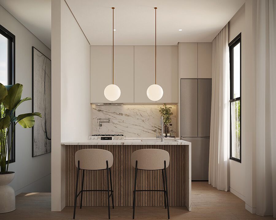 Boutique Two-Bedroom Condominium with Private Garage in Ridgewood. A quiet, design-driven two-bedroom condominium with a private garage in Ridgewood, one of New York's most exciting and up-and-coming neighborhoods. Residence 2 at 2132 Bleecker Street is a thoughtfully renovated two bedroom, one bath condo that blends modern minimalism with warm, natural materials. The interiors feel calm and intentional, featuring wide-plank wood floors, oversized windows, and soft, neutral finishes throughout. The open living and dining area flows seamlessly into a sleek kitchen outfitted with custom cabinetry, stone countertops, stainless steel appliances, and refined detailing designed for both everyday living and entertaining. The space is filled with natural light, airy, and beautifully balanced. Both bedrooms are well-proportioned and serene, offering flexibility for a primary suite, guest room, or home office. The apartment is equipped with an in-unit washer and dryer for added convenience. A rare highlight is the private garage, offering secure off-street parking, along with a second private entrance directly into the apartment. Housed in a newly renovated two-unit condominium, the building offers exceptional privacy, low-density living, and a sense of ownership more akin to a townhouse than a typical condo. Located near Ridgewood's cafés, restaurants, parks, and transit, this home balances neighborhood charm with modern comfort.