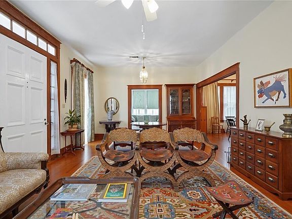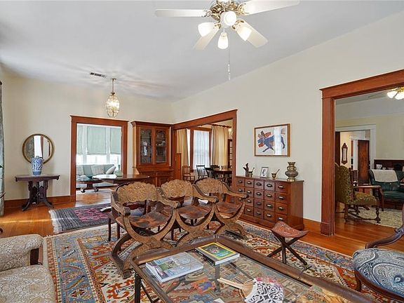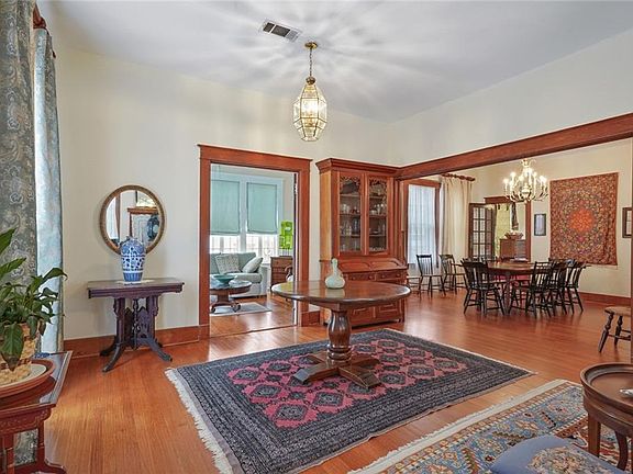 Charming cottage blocks from Tulane University. Beautiful newly refinished oak floors throughout, 10 foot ceilings, lots of windows. Extra large living and dining rooms with beautiful millwork, cheerful sunroom. Updated kitchen with breakfast room with original china cabinet. 3 independent bedrooms and 2 attached dressing rooms. Long driveway with patio and garage. 300 sq ft guest house has bdrm, kitchen & bath-can be rented. Gorgeous green tile roof refelted in 2021, HVAC replaced in 2019. Move right in!