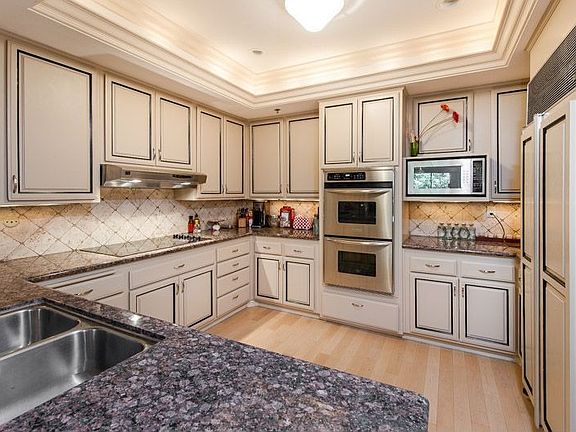 Here is the unit your clients have been waiting for in Guard-Gated Park Place. Special Offering priced to sell. Largest floor plan available in Park Place, a 14 acre low-rise condo complex in a park like setting within walking distance to shops, restaurants, and theaters. Remodeled with designer finishes, single level with 2 BR suites and a large den with fireplace and bookcases. Entry with powder room, formal dining room, spacious living room with fireplace and built-ins with a gorgeous wet bar. Luxurious master suite with walk-in closets and fireplace gourmet chef’s kitchen with s/s appliances, granite counters, and a breakfast room. Laundry room in unit. Amenities include clubhouse, pools, gym, tennis, guard-gated entry, 3 sxs parking in security garage. Rare opportunity and stunning upgrades. Easy to show!