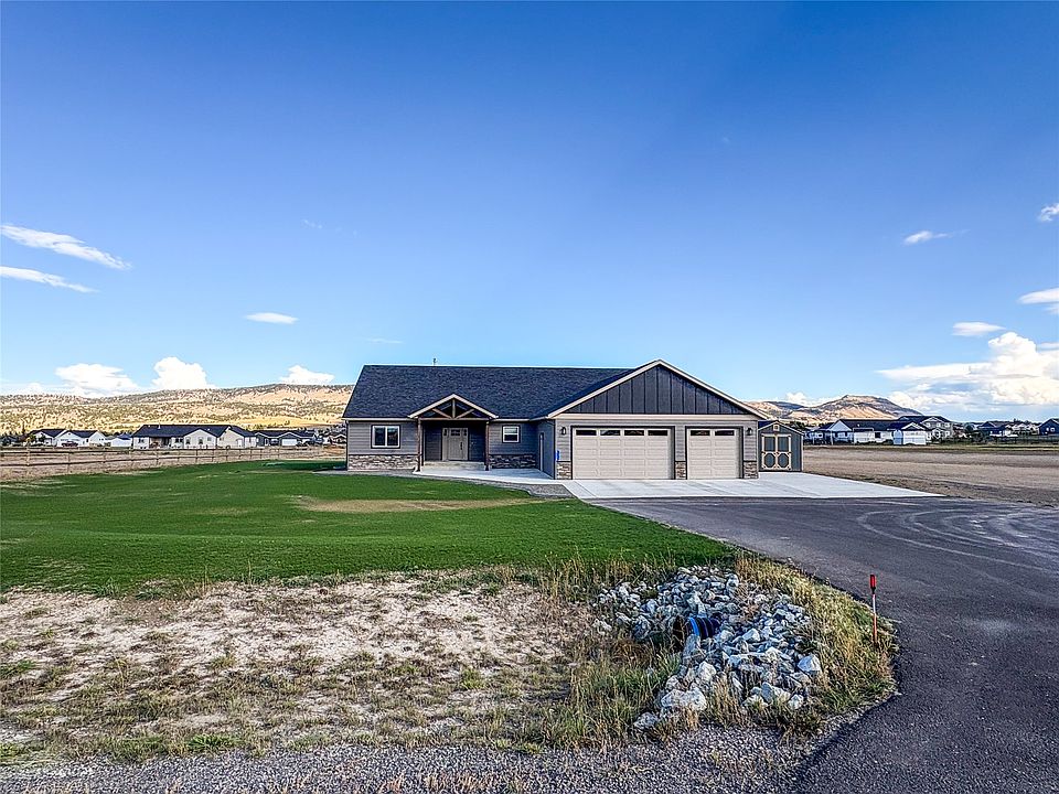 With fresh landscaping, under ground sprinklers and curbing on the way this newer home on 2 acres was constructed by Rolo Construction to the highest standards! An expansive ranch-style rambler that boasts over 2,900 square feet, 4 bedrooms, a spacious laundry room, and a walk-in pantry, this property has so many custom touches. The dream kitchen comes complete with upgraded granite countertops and a stunning backsplash with a pot filler above the stove, along with a wine and coffee bar. The master bedroom has all the details you would want with tile walk-in shower and closet, soaker tub and elegance everywhere. Enjoy an open living area with a cozy fireplace and oversized stamped concrete patios in both the front and back. The home offers ample storage space and a heated oversize 3-car garage.