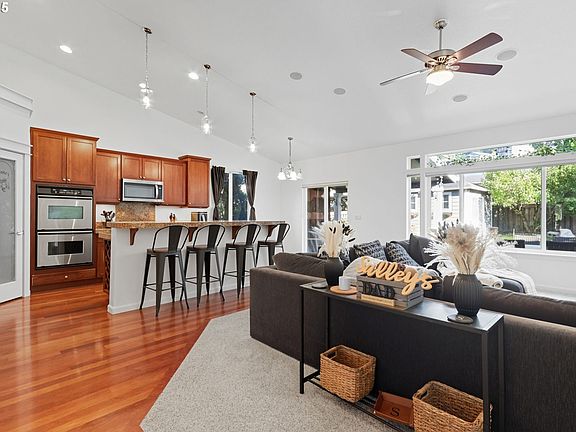 Beautiful single-level, open concept home in sought-after Granite Highlands! This entertainer’s dream features vaulted ceilings, Brazilian cherry hardwood floors, and a gourmet kitchen with granite counters, double ovens, and gas cooktop. The easy-flow floor plan connects the spacious living area seamlessly to the outdoor living space — perfect for gatherings.Enjoy the private, low-maintenance backyard with putting green, pond & water feature, plus a versatile 12×12 flex space ideal as an artist’s den, workout room, or hobby studio. The large bedrooms include a serene primary suite with private gazebo. Located in highly rated Camas schools, just minutes to golf, shopping, and dining.