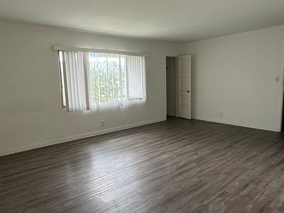 Remodeled Spacious 800 sq. ft. apartment on the second floor featuring 1 bedroom and 1 bathroom. The kitchen and dining area have marbled tile, modern cabinets plus stainless steel appliances. The large living room and bedroom are finished with vinyl flooring. Enjoy plenty of storage with two large coat closets, hallway cabinets, and a bedroom closet. This unit has two entrances, with lots of natural light, is in a quiet community, and includes onsite laundry. Conveniently situated near the 5 Freeway, Empire Center, shopping, dining, and more! Don't miss out on this fantastic opportunity. Contact us for more details or to schedule a tour! Owner Pays for Water and Trash. Tenant agrees to pay gas and electric.