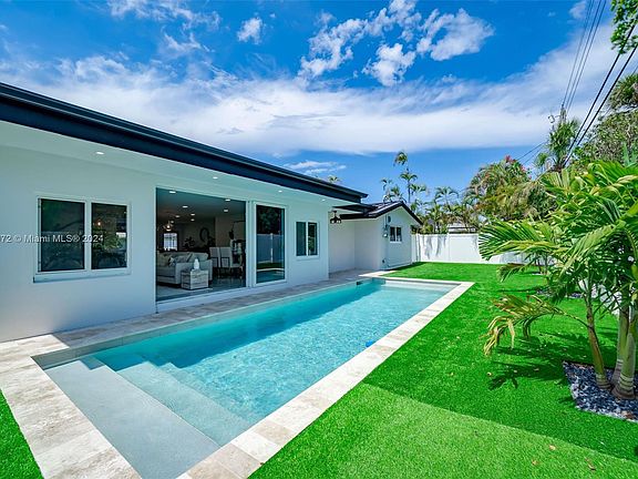 Immaculate and Completely Refinished Pool Home in Imperial Point! This Pristine, 4/2, Open Floor Plan home has many new features including a New Metal Roof, Impact Windows and Doors, New plumbing, New custom built Gourmet kitchen, with a Double Island design and a Gas Range. New custom designed bathrooms, which include curb-less showers and a soaking tub. New Porcelain floors, doors, and trim. All NEW Lighting, electrical panels, tankless water heater, paver driveway, sprinkler system, and privacy fence. Newly installed Pool and travertine decking. Maintenance free Turf in the back yard and tasteful landscaping in the front yard. All the work on this Professionally Designed Rebuild was permitted. A Must See in Imperial Point! Seller is a licensed broker.