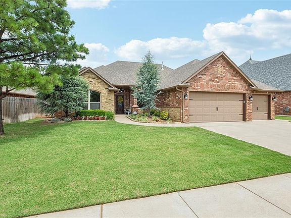 Welcome to Yukon's Mustang Creek Addition! You will fall in love with the curb appeal! This beautiful true 4 bedroom home with a separate study boast an open floorplan with a large living room with an attractive stone fireplace. The kitchen offers granite counter tops and stainless steel appliances and breakfast bar. Just off the kitchen is a spacious laundry room with abundant storage. The primary bedroom en-suite has a walk-around closet, separate walk-in shower and whirlpool tub. You will enjoy entertaining or just relaxing on the large covered patio over looking a sizeable, private backyard. There is an inground storm shelter in the 3 car garage. NEW ROOF COMMING! The community offers a basket ball court, pavilion and children's park. Located in Mustang School District and convenient to the Turnpike, highways, shopping and restaurants.
