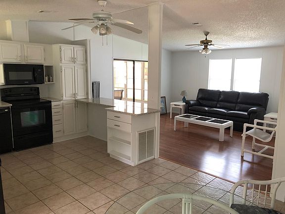 Manufactured home is 936 sq ft, that has 2 bedrooms and 2 bathrooms. Open kitchen plan and a spacious living room.