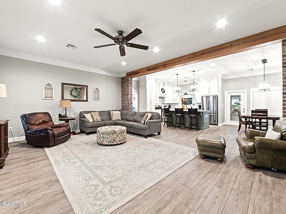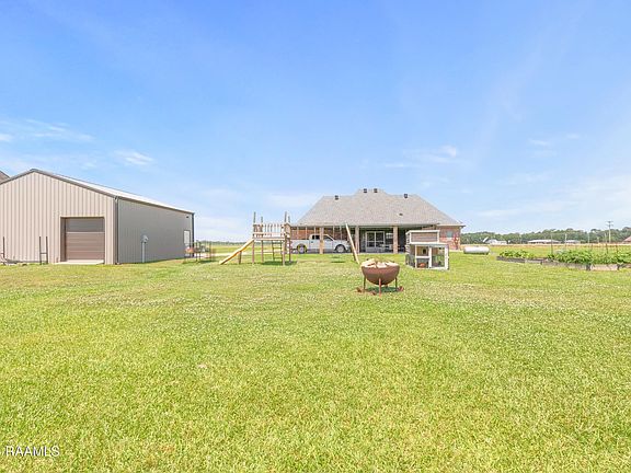 ROBERT'S COVE! 3.2 ACRES! CUSTOM BUILT with lots of EXTRAS! Built in 2019, this 2,052sf beauty features an open-concept layout with a split bedroom design, triple-crown molding, 10' & 9' ceiling heights, brick columns, and an exposed cypress beam. The heart of the home is a beautifully appointed kitchen with GRANITE countertops, a 7 ft+ ISLAND with storage on both sides, stainless appliances, handcrafted CEILING-TO-FLOOR CABINETRY with thoughtfully designed storage areas. Wood-look porcelain tile flooring enhances both style and durability. The spacious primary suite is a true retreat, offering an extra-large layout, a luxurious five-piece bath with reclined SOAKER tub with arm rests, ceramic-tiled MULTI-HEAD SHOWER, DUAL VANITY, and a SPACIOUS walk-in closet with built-ins. Two additional bedrooms feature ample closet space and share a HALL BATH with another DUAL VANITY! The oversized laundry room includes a dedicated FOLDING AREA, CABINETS, hanging ROD, broom CLOSET, and EXTRA SPACE for a freezer, additional fridge, or safe, plus a FOLD-AWAY IRONING BOARD. A nearby half bath adds extra convenience for guests. Outdoor living is easy with a 200sf SCREENED PORCH featuring a food prep area with a GRANITE COUNTERTOP and large STORAGE closet. A covered patio with brick columns and a PROPANE CONNECTION is perfect for outdoor cooking. The 30x30 METAL BUILDING with TWO roll-up doors offers endless possibilities... workshop, recreational storage, boat or RV parking. An 80x180 POND at the back of the property adds to the home's appeal and can be stocked for fishing. Additional features include an ON-DEMAND HOT WATER system, whole-home GENERATOR CAPABILITY, a Lorex SECURITY camera system, and OPERABLE SHUTTERS for both charm and storm protection. Designed for convenience and a relaxing lifestyle, this exceptional property offers the perfect blend of comfort, space, and enjoyment, just 4 miles NORTH OF I-10! Only 18 minutes (17.9 miles) to Exit 100, Ambassador Caffery Pkwy!