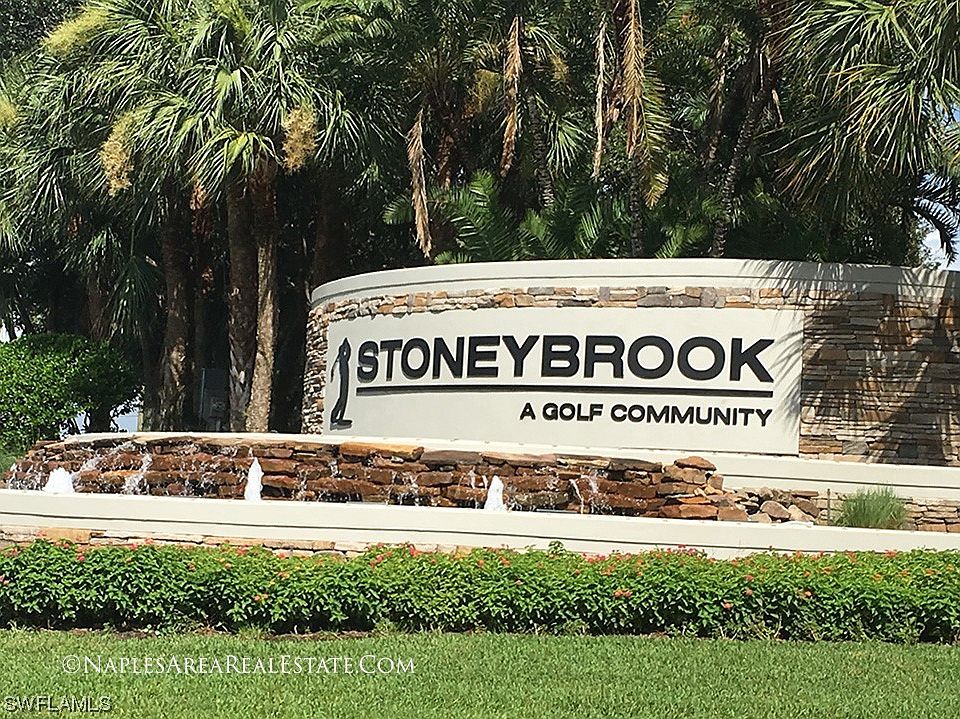 Welcome to this highly desirable Lakefront first-floor end-unit 2 Bed /2 Bath Condo in Stoneybrook. A fabulous opportunity to own this beautiful and well-maintained home that features tile throughout the main living area, Eat-in a bright kitchen with a breakfast bar that overlooks the family room and spectacular views of the lake and gulf course from the private lanai. Exercise room, tennis courts, pickleball, volleyball, basketball, in-line skating rink, bocce ball, baseball field and a 24-hour guarded gate, offering residents an added level of security and peace of mind. The Gulf course is public, you can pay when you play. Ideally located, you will be close to shopping, dining, and entertainment options, making it perfect for those seeking an active and fascinating lifestyle in SWFL. Close to the Interstate, Beaches, and University. Short walk to the golf course clubhouse, CVS, Publix, Miromar Mall, and Hertz Arena. 15 minutes from Fort Myers Airport. Stoneybrook great amenities make