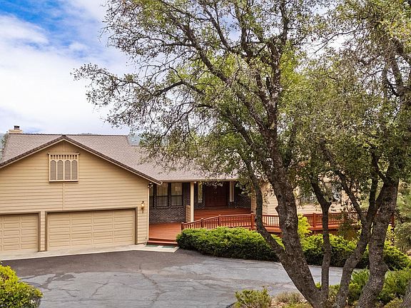 Welcome to Apple Valley Estates, one of Sonora’s most desirable gated communities, offering a pool, clubhouse, and year-round activities. This spacious 3,751 sq ft residence is thoughtfully designed for both comfortable everyday living and effortless entertaining. A formal entry with double oak doors opens to a sunken living room, where vaulted ceilings and a dramatic wall of windows showcase sweeping views of the Sierra Foothills. The main level features a formal dining room, a large kitchen with island and dining nook, a cozy family room with fireplace, and a generous primary suite with a spa-style bath. Two additional bedrooms, two full baths, and a laundry room complete this floor. Expansive wraparound decks on both levels seamlessly extend the living space outdoors. The lower level offers incredible versatility, including a family/game room with bar and pool table, a dedicated office, a full bath, and a bonus room perfect for an ADU, guest suite, or multi-generational living. A large workshop and storage area provide additional function and flexibility. Set on 1.32 private acres, this property offers space, views, and community—just minutes from Sonora’s shopping, dining, and recreation.