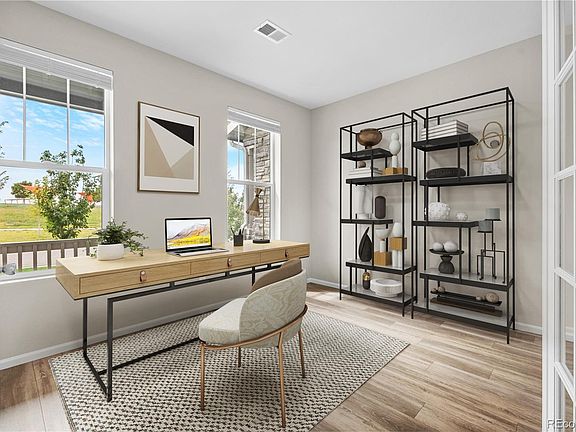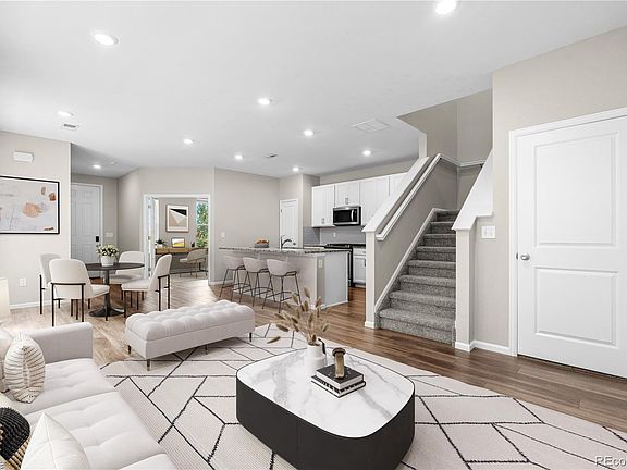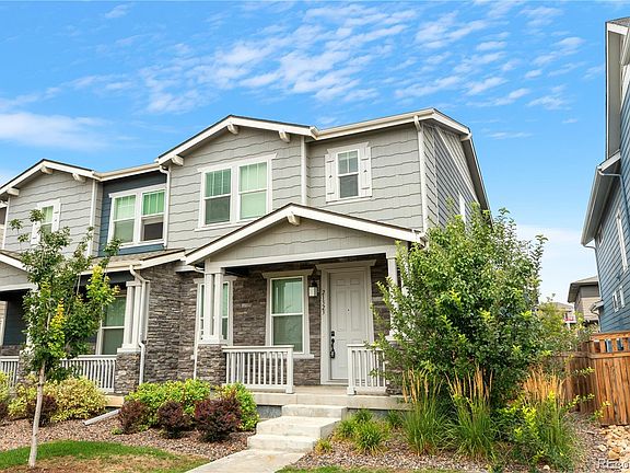 Functional and current, this 3 bedroom, 3 bathroom paired home sits on a premium lot in the award-winning “Masterplanned Community of the Year.” Ideal for outdoor enthusiasts, the neighborhood offers over 30 acres of open space, gardens, parks, and scenic trails—along with modern conveniences like easy access to the light rail and Denver International Airport. Enjoy western facing views that provide a front row seat to beautiful sunsets from your doorstep. The home is supremely located directly across from the community’s largest park (22 acres!) and a playground. Inside, the 9 foot ceilings create a spacious and airy feeling throughout the first floor. Off the entry, a bright office with French doors and a nearby powder room make a model work from home setup. The kitchen features white cabinetry, granite countertops, tile backsplash, stainless steel appliances, pantry, and a central island. Travel upstairs on the plush carpet and you’ll find all three bedrooms, two bathrooms and a cozy loft area—great for relaxing or additional workspace. Storage is abundant with the two car attached garage, crawl space, and generously sized closets. Completely move in ready!