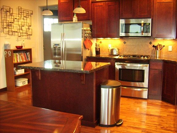 Gourmet kitchenNew appliancesFull tile backsplashGranite slab countersLg appliancesFreshly painted home