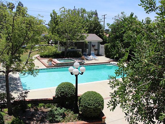 This unique 4 bedroom, 3 bath home is situated on a quiet street in the Heritage Estates area of Chatsworth. The home has been lovingly maintained and upgraded over the years by the original owners. Some of the upgrades include custom wood paneled ceilings in the living & formal dining rooms, dual pane windows & sliding doors, brick flooring, corian counters in the kitchen, wrap around balcony off of the master suite, and new A/C condenser & Forced Air unit. Situated on just under 18,000sqft of professionally landscaped grounds, this home is an entertainer's dream. Step out the back door into the huge wrap around covered patio with built-in BBQ, fire pit, swimmer's pool and separate spa. Beyond the pool area is an expansive lawn, gardens and pool house with a walkway to the lighted paddle tennis court. Best of all, this home is powered by a solar system that is owned, NOT LEASED! The current owners have paid minimal electricity bills over the last 5 years.