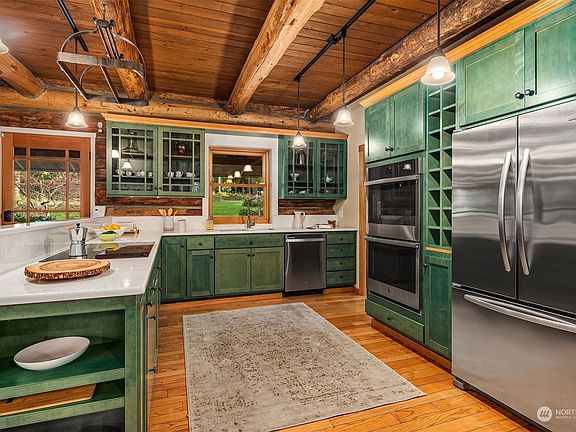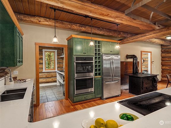 A true legacy property. This enchanting log home is perfectly sited on over 7 pristine acres and borders the coveted Westchester neighborhood on Redmond’s Novelty Hill. The gated drive leads to a serene retreat boasting stunning grounds, fruit trees, walking trails, a sport court, and complete privacy. The main floor offers a remodeled kitchen and seamless flow for cozy conversations or huge gatherings. Upstairs boasts 3 beds with large walk ins, bath and den. Lower level is all about fun with game room, living room, bath and 2 beds. Character abounds, from lovingly preserved wood stoves to beautiful Anderson windows. Live as is, build your dream estate, add other structures or arena. Phenomenal schools. Water and Sewer in street.