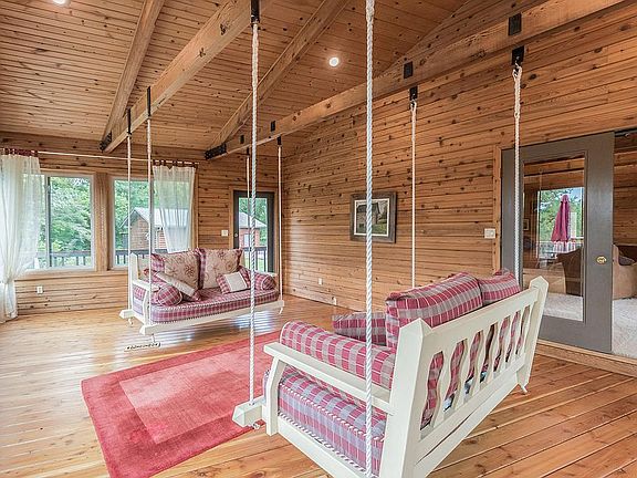 Contemporary rustic country home is move-in ready and sits on 35 spacious acres along Trade River. Enjoy gorgeous views from enormous wrap around deck. Quality construction throughout w/ new roof (2021). Kitchen is great for easy entertaining. UL offers amazing sun room perfect for porch swing, large living rm, main floor Master BR soaring ceilings, 2nd BR and full BA. Finished w/o LL has family rm, 3rd and 4th BR and full BA. Numerous outbuildings with a heated shop. Enjoy the long blacktop driveway and heated garage!