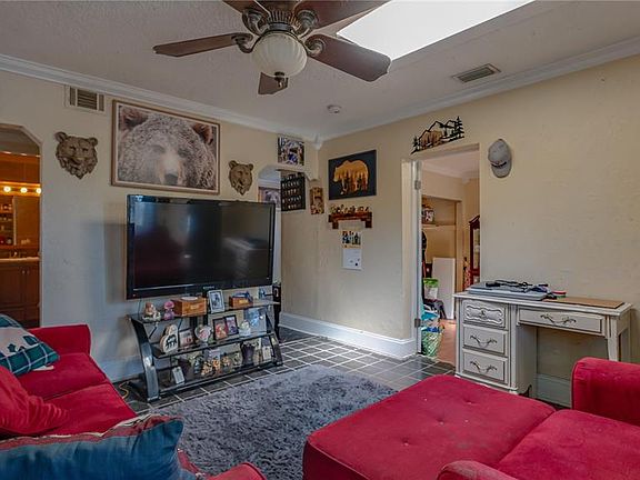 This 3-bedroom, 1.5-bath St. Petersburg home offers excellent potential for those looking to add value through renovation. Featuring a paver driveway and glass-panel front entry, the home has great curb appeal and a functional layout ready for your updates. Inside, large windows and skylights bring in abundant natural light, and the existing laminate and ceramic tile floors set the stage for a fresh new look. The spacious kitchen offers granite countertops, ample cabinet space, and a breakfast bar with a granite top. French doors lead to a wooden deck and fenced backyard, perfect for entertaining once revitalized. The primary bedroom features a step-down entry, skylight, and double sliding-door closet. Bathrooms have been partially updated with newer vanities and lighting, offering a solid foundation for cosmetic completion. With repairs and updates, this property could shine—ideal for investors or buyers ready to put in sweat equity. Cash or construction loan preferred.