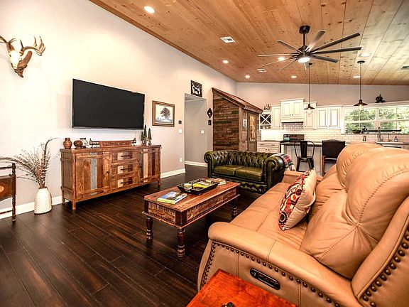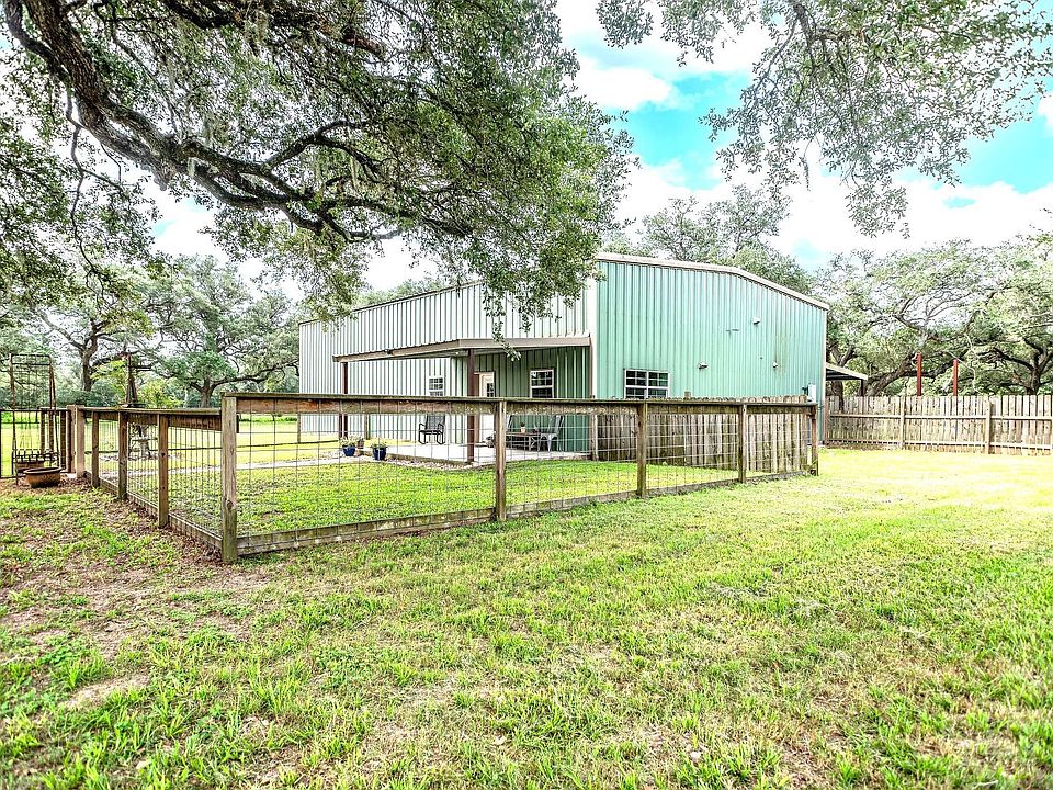 This exceptional 14+/- acre ranchette features a beautifully designed 1,820 sq ft barndominium nestled among majestic mature oak trees. Built only 7 yrs. ago, this unique property offers the perfect blend of modern comfort & rustic charm, ideal for those seeking a peaceful country lifestyle. The thoughtfully designed barndo boasts 2 spacious bedrooms & 2 full baths. The open concept design maximizes every square ft creating a warm & inviting atmosphere. A substantial 850 sq. ft lean-to provides endless possibilities for hobbyists, craftsmen, or those needing extra storage & workspace. The shop area can easily be converted to additional living space if desired. Working pens w/ chute enable efficient cattle handling. A 4-stall horse barn provides excellent equestrian facilities. This remarkable property offers turn-key agricultural operations w/ elegant barndo living. Call today!