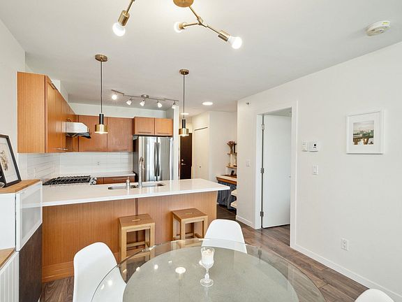 Corner homeWalnut laminate flooringFresh paintNew roller blindsModern lighting fixturesSmooth ceiling finishWhite quarts counters