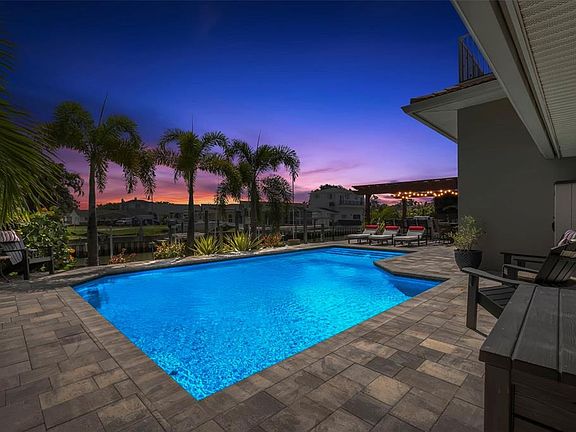 Welcome to 2133 Harbor View Dr in Dunedin FL. Dreams do come true in this stunning luxury waterfront residence located on one of the most desirable streets in Dunedin, one of Tampa Bay’s most sought-after coastal destinations. This beautiful home features 5 bedrooms and 4 full baths. This two-story estate showcases a first-class renovation with soaring 10-foot coffered ceilings, expansive impact-rated windows and doors, a whole-house gas generator, and elegant designer finishes throughout. From the circular driveway, the impressive architecture and welcoming covered entry with solid wood and glass double doors set the tone for what awaits inside. Step into a coastal-inspired open great room designed for Florida living at its finest. The chef’s kitchen is the centerpiece, featuring a large quartz-topped island with bar seating, GE Café appliances including a gas cooktop, under-counter microwave, double convection ovens, and floor-to-ceiling cabinetry. A dry bar with beverage cooler offers added convenience, while the adjoining dining area and living spaces flow seamlessly together. Floor-to-ceiling windows fill the home with natural light and frame views of lush tropical landscaping, the sparkling pool, and tranquil waterfront. The main level includes a primary suite with sliders to the pool deck, custom closet system, electric shades, and a spa-like ensuite bath. Two guest bedrooms with plantation shutters and built-in closets are located across the family room, along with a full bath and laundry facilities. Upstairs, a grand primary suite offers a seating area with built-in cabinetry, French doors to both front and rear balconies, and an ensuite featuring dual vanities, a large walk-in shower, private water closet, and a spacious custom closet. From the rear balcony, enjoy morning coffee overlooking the pool and canal, where dolphin and manatee are often spotted, while evening sunsets can be savored from the front balcony with partial Gulf views. The outdoor living space is designed to impress, with a resort-style pool, fully equipped outdoor kitchen under a lighted pergola, and seating areas perfect for entertaining. Features include a professional-grade grill, seafood boil burner, oversized griddle, beverage fridge, granite counters, storage, and a high-resolution outdoor TV. A beautifully designed full pool bath with shower adds convenience. The newer seawall and maintenance-free dock include a 20K pound boat lift plus a smaller lift for a tender or Jet Ski, offering quick access to the open Gulf waters. Located mins from downtown Dunedin, boating marinas, the Pinellas Trail, golf courses, the Toronto Blue Jays Spring Training ball park, beaches, historic hotels, and Honeymoon Island. Pinellas Trail spans nearly 40 miles, offering scenic biking, walking, and jogging paths that connect charming downtowns like Dunedin, Clearwater, and Tarpon Springs. Mins from Honeymoon Island, one of Florida’s most celebrated beach parks, features pristine white-sand beaches, nature trails, and ferry access to Caladesi Island. Living here means endless opportunities for recreation, relaxation, and soaking up the best of the Florida coastal lifestyle—just mins from your doorstep. Dunedin itself is a charming and vibrant city with a downtown area filled with delicious restaurants and unique retailers. The city offers recreational activities for all ages, historical landmarks, cultural events, & nearly 4 miles of picturesque waterfront. Call today!