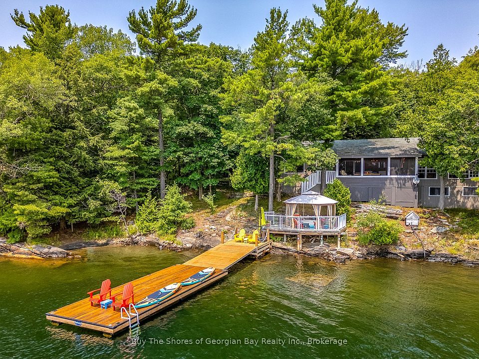 This stunning Georgian Bay waterfront cottage has 5 bedrooms and 2 bathrooms. The Great Room is spacious and comfortable with a beautiful stone fireplace. There is a generous size enclosed porch to relax and enjoy cottage life. This cottage is everything anyone could want. The views looking out over the bay are breathtaking. The cottage is being sold fully furnished with high end furniture and accent pieces. Pride of ownership is evident inside and out. Spectacular clean deep water can accommodate any size boat at your own private dock. With over 200' of shoreline, and over 1 acre of property, you will have plenty of space for family and friends.Located on a well maintained year round private road,High speed internet and a large storage /workshop under the home. No work is required at this property. Great location only 2 hours to GTA..