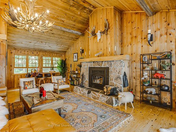 Georgian bay waterfrontBeautiful stone fireplaceGenerous size enclosed porchPrivate dock