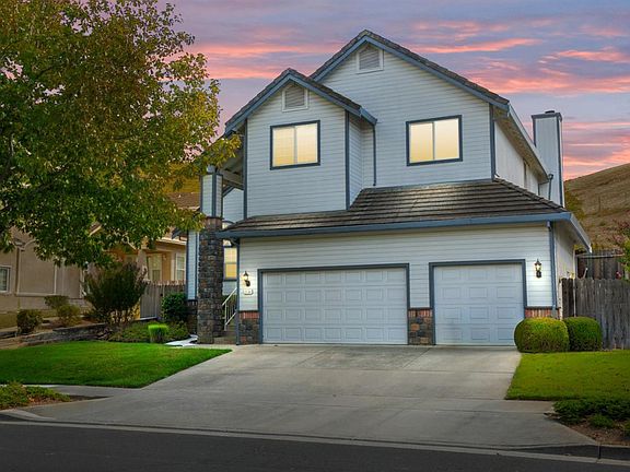 Discover this stunning four-bedroom, two-and-a-half bathroom home nestled in the exclusive Rolling Hills neighborhood that offers both privacy and convenience. The heart of this home features a large, well-appointed kitchen that flows seamlessly into the attached family room, creating an ideal space for entertaining and daily living. A separate dining room provides elegant space for formal meals and special gatherings. Soaring cathedral ceilings add dramatic elegance throughout, while the expansive primary bedroom and bathroom suite provides a luxurious retreat from the everyday. The three-car garage provides ample storage and parking, and the home features brand new carpet, a newer furnace and ducting system for efficient climate control and year-round comfort. Step outside to your custom covered deck overlooking a sparkling pool and endless views of hills and open space on one of the largest lots in the neighborhood at .36 of an acre! Your rear neighbor is total open space ensuring lasting privacy and tranquility. This exceptional property combines serene suburban living with unmatched accessibility to top-rated schools, Rolling Hills Park, diverse shopping and dining options, and convenient I-80 access for easy commuting. Welcome home.