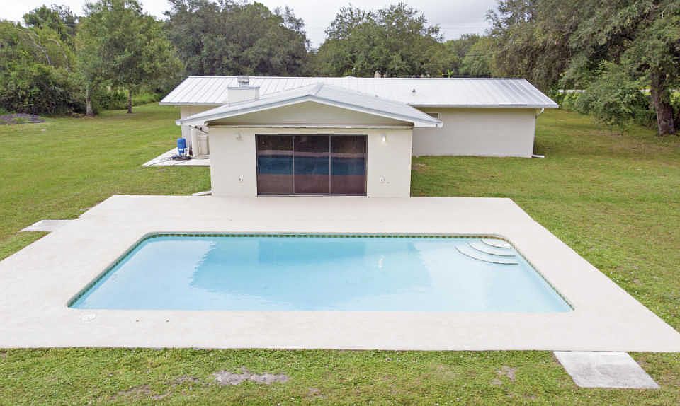 If you're looking to escape the city with your own pool oasis, YOU FOUND IT! Discover country living on almost a full acre of land with plenty of room to play! Featuring a 36x16 pool, FULL interior remodel with metal roof, CBS construction with over 2,000 SQ FT!!! Granite countertops in the kitchen with new stainless steel Maytag appliances. LED recessed lights and waterproof wood flooring throughout, tile in the bathrooms. Living room wired for surround sound. New plumbing, new AC duct work, double pane windows with a full set of hurricane shutters and blown-in insulation makes this house energy efficient. Both AC & water heater newer as well. Plenty of room in the custom master bedroom with walk in closet, his/her sinks and tiled shower. Schedule to see this beauty before it's too late!
