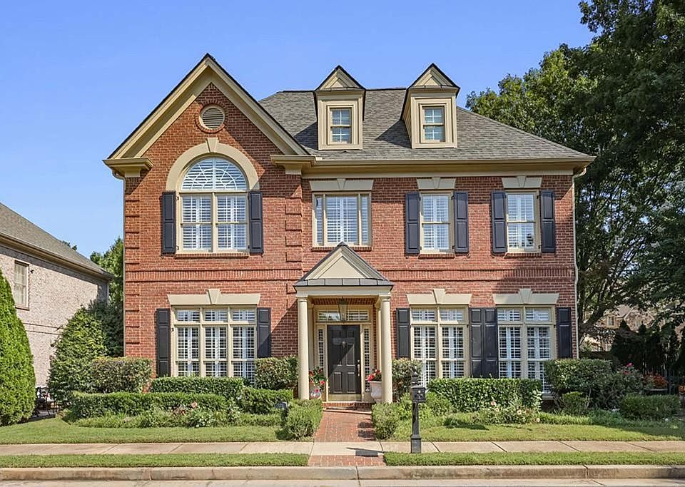 Elegant Federal-Style Home in Exclusive Smyrna/Vinings Enclave reminiscent of Charleston. Tucked within a private enclave of just 49 homes surrounding a picturesque town green with gazebo, this all-brick, Federal-style residence blends timeless architecture with modern comfort. Offering over 3,500 square feet, 4 bedrooms, and 3.5 baths, every detail blends architectural elements and modern sophistication. Inside, soaring 10-foot ceilings on the main level and 9-foot ceilings upstairs create an open, airy feel. Custom millwork, wainscoting, and a coffered ceiling in the family room add refined character, while the brick-and-stone fireplace with built-ins offers warmth and charm. A gracious office/living room provides an ideal work-from-home retreat. The gourmet kitchen features a gas range, commercial-sized refrigerator, and walk-in pantry, opening to a spacious breakfast room and large dining room perfect for entertaining. French doors extend the living space outdoors to the covered patio with a grilling station including a gas grill and Big Green Egg, Bar, Ceiling heaters, Fireplace, and TV seamlessly blends indoor and outdoor living and is ideal for year-round enjoyment as well as keeping cozy during Fall football watching weather. Upstairs, the oversized owner's suite includes a sitting area, custom closet and a luxurious bath with double vanities, a jetted whirlpool tub, and a large walk-in shower. Two secondary bedrooms share a Jack-and-Jill bath, while the fourth enjoys its own ensuite. Beautifully manicured landscaping out front and the enchanting backyard, includes two charming garden gates with lead to the front and side of the house, along with a private rear-entry, 2 car garage with epoxy floor coating, complete the features of this remarkable home. Enjoy low Cobb county taxes while being only minutes from upscale shopping and dining. From Smyrna Market Village to Vinings with its unique shops and restaurants, West Midtown and the Airport, it's one of the most coveted locations and provides a lifestyle of distinction. This property is truly a must-see.