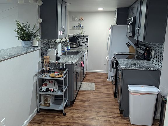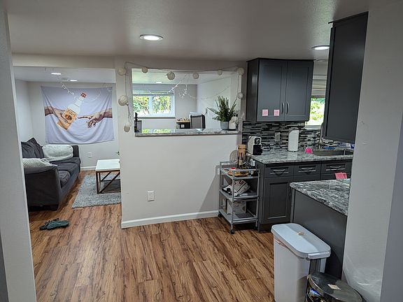 Come check out this awesome basement apartment which includes all utilities and wifi! Park in your spacious 4 car driveway off a private alley. The front entry features a covered patio perfect for all weather. Come inside to the open kitchen, living and dinning area before heading towards the back of the unit to the three quiet bedrooms. (Bedroom photos not included for current tenants privacy) Unit includes lots of additional storage space outside of the bedrooms, in unit washer/dryer and a double vanity in the larger of two bathrooms. Enjoy the fantastic location just minutes from I5 on ramps, Aurora rapid ride buses or the Northgate transit center/park and ride and light rail station.