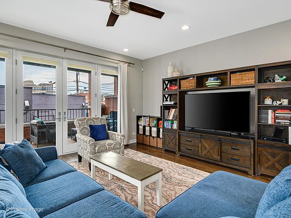 Welcome home to this 3BR/2.1BA duplex-down in a newer-construction boutique building in West Bucktown. Refinished hardwood floors run throughout the home. Beautiful updated kitchen with Quartz counter-tops with waterfall edge, Espresso cabinetry with 42" uppers, and stainless-steel appliance package including exhaust hood. Desirable floorplan with all 3 bedrooms located on the lower level. Fabulous primary ensuite bathroom with oversized glass shower enclosure, porcelain tile flooring/wainscoting, dual vanity with undermount sinks, and Quartz countertops. Private terrace with composite decking in addition to common roof-top deck with downtown skyline views. All-brick masonry building that is 100% owner occupied. Garage parking included (1 spot) plus common storage for bikes & strollers. Commuters dream, with easy access to the Western Blue line train, as well as close proximity to 90/94 expressway. Walk-to-everything location with near all the fantastic bars and restaurants in Bucktown as well as Logan Square!