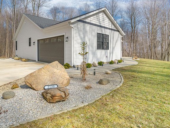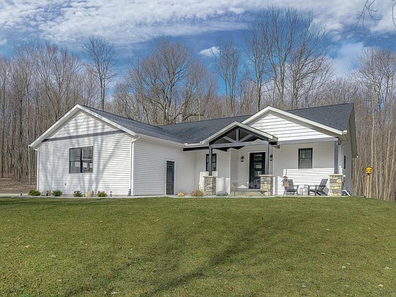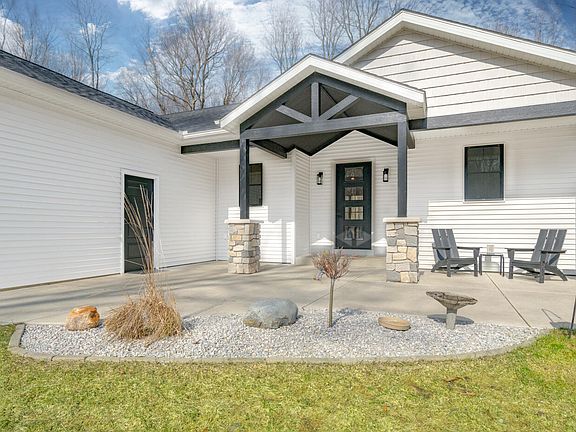 This beautiful custom built ranch is nestled on just shy of 4.4 acres in a wooded highly sought after neighborhood minutes from Otsego. This 2021 build was carefully designed with thoughtful planning in regard to layout, storage, sustainability, detail and energy efficiency. The main level features an open floor plan with a ton of natural light. The kitchen offers Washburn cabinets, quartz countertops and stainless appliances. The primary bedroom boasts a large closet and ensuite. There is an additional bedroom, family bathroom and laundry room that finishes the main level. Going downstairs, you will find a large rec room, two additional bedrooms with egress windows and a 3rd full bath. This home is a nature lover's paradise. You will enjoy wildlife and your cup of coffee from the back enclosed patio or the covered front porch and provides plenty of space for entertaining inside and out. There is an attached Two car garage (which is attached by the perfect sized mudroom) and the Seller has already cleared space for an additional detached garage or pole barn. There has been electricity run for a generator and hot tub. This quiet neighborhood provides the perfect place for walking or running. You will also have the woods behind the home to roam as well. This home is the complete package! This home has character, charm and convenience, making you feel welcome walking in. Pack your bags and welcome home.