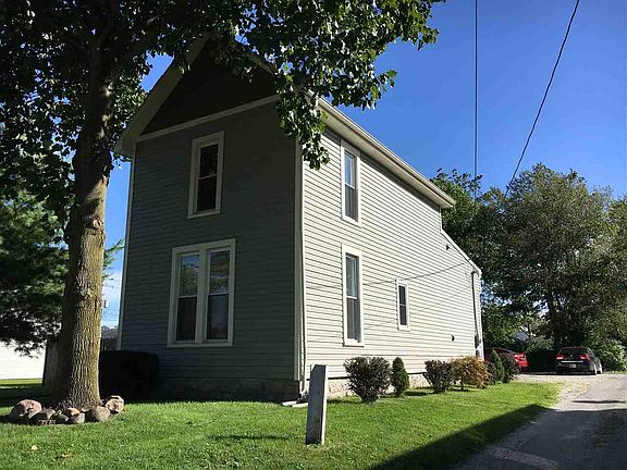 Looking for home cheaper than renting? Here it is! Move-in ready! Economical 2 bedroom, 1 bath spacious home in town under $60,000! Open kitchen, dining and living room. Seller has installed some newer flooring, painting and updated bath witness nice claw soaker tub. Must see the enclosed industrial grade ceiling and wall covering on front porch! Off street parking in back with 1 car detached garage. Partial fenced yard a plus! Walk to Lake Clare to enjoy the seasons! Close to Old Hwy 24 for easy access to Ft Wayne, Wabash, or Columbia City. Low taxes too!