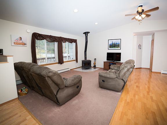 This beautiful and spacious 3 bedroom, 2 bath single-family home features an open-concept living area. New carpet in living room and bedrooms, hardwood throughout kitchen, hall ways and dining area. New countertops and backsplash in the kitchen. Kitchen cupboards offer pull out drawers. Woodstove in the living room keeps this house extra cozy! Large master bedroom features walk in closet and jetted tub. Two-car garage with built in shelves. Covered front porch and 10x16 rear balcony deck. Large back yard. 832 sq ft of easy access, walk-in crawl space. Built in 2001, rated 5 star energy in 2010. Call 208-550-1405 or 406-471-6048 for an appointment showing today.