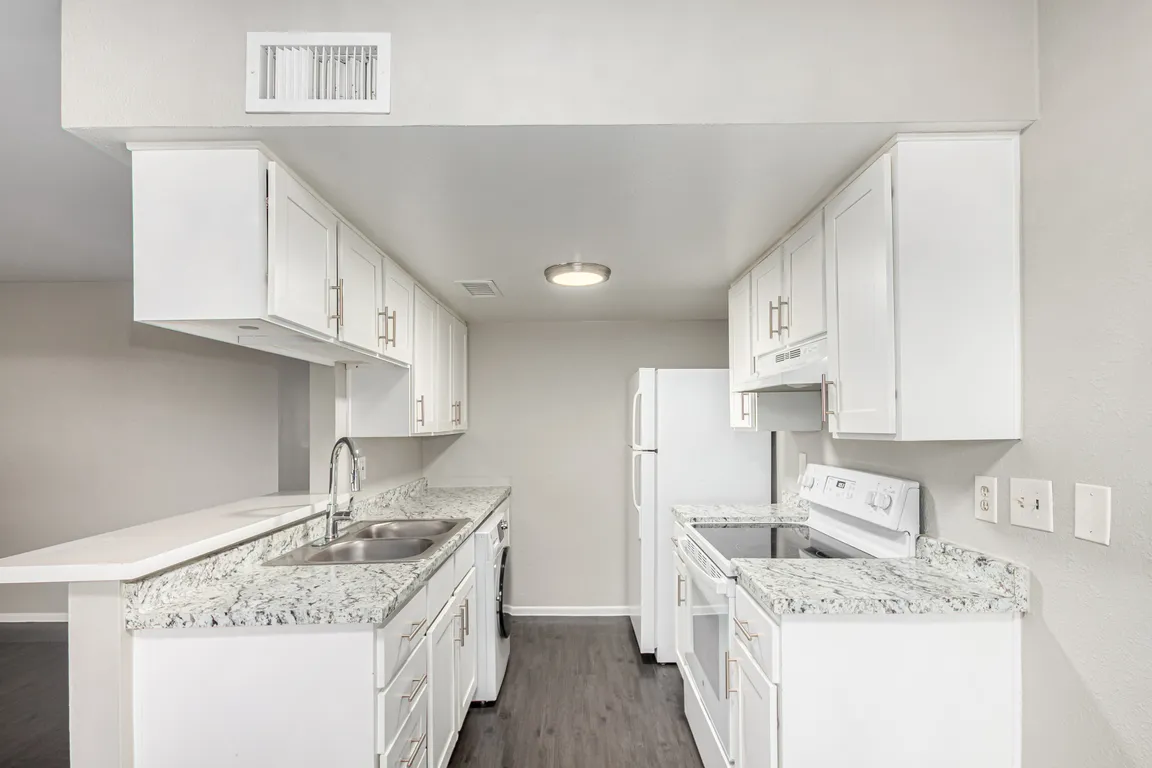 Modern appliancesAmple cabinet spaceCozy homeLarge windowsWell-designed layout