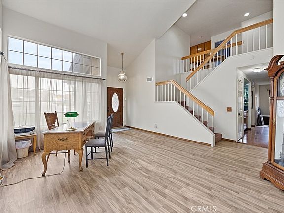 This home boasts 4 bedrooms, an office/bonus/5th bedroom, kitchen with island, wet bar, separate dining area, and high ceilings with natural light in the entryway. New vinyl flooring in the entryway and bathrooms upstairs.