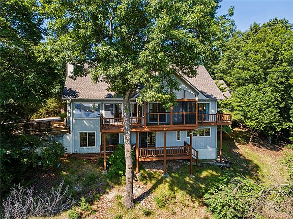 Wow! Expansive, year-round Beaver Lake view home perched up above the trees in Lost Bridge Village. Well maintained w/very functional floor plan! Open concept main level w/cathedral ceilings in great room & gas fireplace flanked by built-ins. Walk out to either the open deck or the screened porch. Plenty of kitchen cabinet storage! Primary bedroom w/5-piece bath, walk-in closet & another slider to go enjoy the outdoor living areas. Lower level also has great lake views, along w/2 more bedrooms, full bath, laundry room, family room w/mini wet-bar & gas fireplace. Lower level workshop area could easily be converted to a 4th bedroom. Two more walk-outs to the lower deck & one to the side yard & storage shed. 2-car detached garage w/upstairs bonus room that would make a great workout room, office, craft room, etc. Home buyer has first right to purchase pontoon boat ($8,000) & transfer the 24' slip lease in Lost Bridge Marina...just minutes away & adding to the appeal of lake life! Must see to appreciate those views!