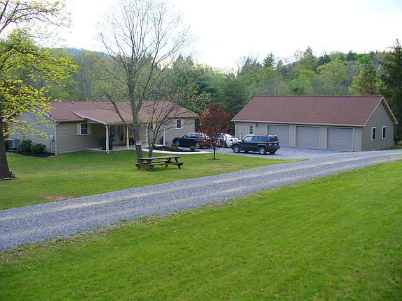 A new master bedroom, bath and walk-in closet were added in 2010. A new 28 x 48 3-car detached garage and workshop with attic storage, covered front porch and sidewalk were also added. New siding, roof, and heat pump were also included at that time. There are 3 bedrooms on the first floor and the finished basement is currently used as 2 additional bedrooms. The house is close to the elementary school and surrounded by woods. It is only 30 minutes to Raystown Lake and Juniata College!Additional property info: http://www.forsalebyowner.com/listing/3-bed-Single-Family-home-for-sale-by-owner-21330-Rogers-Lane-17255/23988821?provider_id=28079