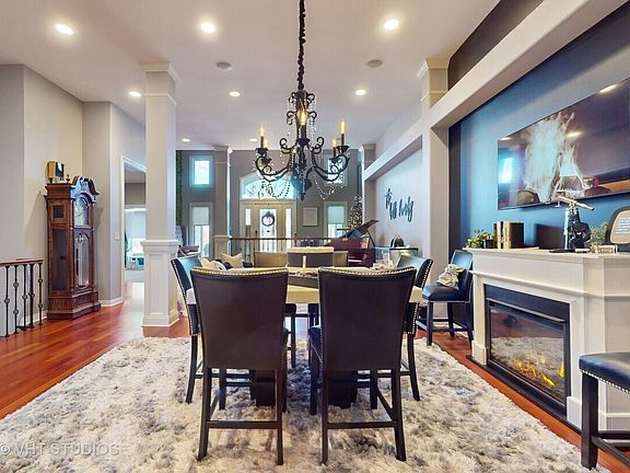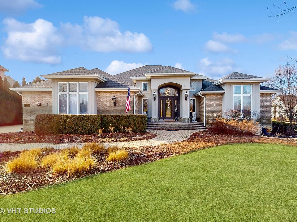 Look!! It is an entertainer's paradise seamlessly blended with the tranquility of a private oasis in this 5 bedroom, 3.5-bathroom oversized raised brick ranch. Nestled on a sprawling corner lot, this residence spans 6700 sqft of pure creativity, redefining what most assume a Ranch-style home is. You won't even miss having a second level! As you step inside, be captivated by the three-season room embraced by an Acre lot with mature trees, overlooking the expansive in-ground heated pool, outdoor seating, and a private firepit seating area that extends beyond the pool gates. Large enough land to add a pool house maybe? The sunset views are unbelievable! Indulge in luxury as the master bedroom provides direct access to a Jacuzzi, creating a seamless connection to your very own backyard oasis. The interior boasts an inviting eat-in kitchen with Brazilian cherry wood floors, complemented by plush NEW carpeting throughout. There are three large bedrooms on the main level, and two large bedrooms on the lower level. There is also a room that can be a small 6th bedroom, office, or a closet. A fully finished lower level awaits, featuring a commercial sized dry bar, a bedroom with windows (currently used as a gym), professionally installed Karaoke stage, another large bedroom (used as an office currently), and a home theater. This home is perfect for hosting unforgettable gatherings. Immerse yourself in the opulence of high-end light fixtures, creative accent walls, and a master bath adorned with a soaker jet tub and his-and-her sinks. There is a new commercial gas sauna with a steam function, reaching a blissful 150 plus degrees effortlessly that stays with the home. Updates abound, from fresh paint throughout to a new double-load smart and high end washer/dryer, plus a barely used smart double oven. The 3.5-car garage is equipped with an EV charger, a modern convenience that stays with the home plus plenty of storage. Enjoy stunning subdivision lake views from the living room, transforming this residence into your personal oasis on one floor - and an impeccable entertainer's haven on the lower level. This home has RING smart technology throughout inside and out for the extra comfort of security. Don't miss the chance to make this extraordinary property your own: where luxury, entertainment, and tranquility converge in perfect harmony. Must see to appreciate! Lincoln-Way Schools.