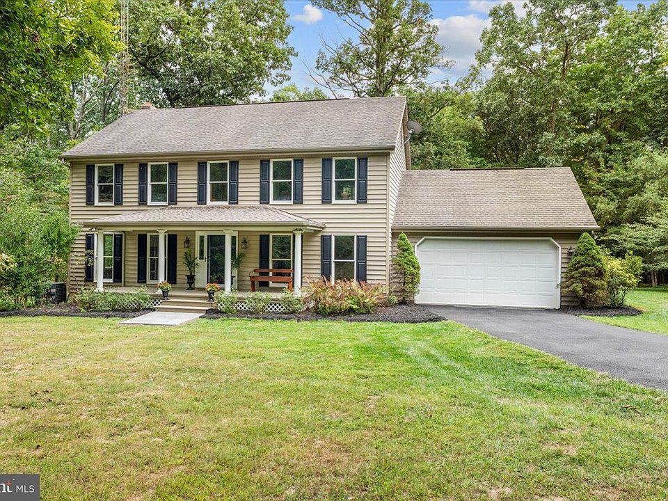 Nestled on a private lot of 3.21 acres, this three story colonial surrounded by parklands offers an ideal blend of luxury, comfort, and privacy. As you approach via the driveway, you are greeted by charming curb appeal and a welcoming front porch. Inside the home features a thoughtfully designed floor plan, with extensive updates throughout. The inviting open foyer sets the tone of this elegant home, while hardwood flooring throughout the main level adds warmth and character. A formal living room with french doors provides a private escape, while the formal dining room is ideal for hosting friends and family. The heart of the home is the chef's kitchen with custom cabinetry, granite countertops, a stylish backsplash, garden window, and stainless steel appliances. The oversized island makes entertaining a breeze, while the cozy breakfast area overlooking the backyard is the perfect spot for enjoying coffee and peaceful views. A powder room is conveniently located next to the kitchen. Steps away is the expansive family room, featuring vaulted ceilings with skylights and seamless access to the back deck. Upstairs the primary suite is a true sanctuary. The updated luxury bath features a double vanity, large glass shower and soaking tub for the ultimate spa-like experience-plus the added convenience of a laundry space within the suite. A versatile bonus room off of the primary suite can be used as an office, crafting, or sitting area. Two additional generously sized bedrooms and another full bath complete the upper level. The lower level with walkout offers endless possibilities with a full bath and LVP flooring, ideal for a theatre room, home gym, playroom, or guest suite. Outdoor enthusiasts will fall in love with the property's natural setting, surrounded by mature trees and close proximity to Greenbriar State Park with biking trails and lake. Enjoy evenings on the deck while grilling, relax beside the fish pond, or tend to your own chicken coop for a taste of country living. Enjoy all of these amenities while having easy access to Rt. 40 and I70. Whether you enjoy family gatherings or a quiet night in, this unique colonial has the timeless charm you have been searching for. Live your bliss...