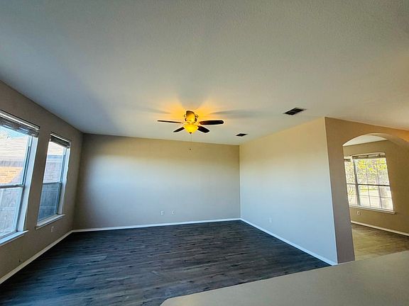 2 car garage. Enjoy a peaceful, large backyard that backs to a greenbelt, offering plenty of privacy and gorgeous Texas sunsets.