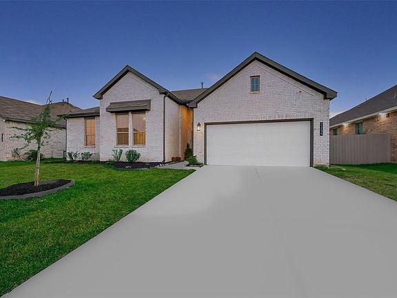 Welcome to this charming 3-bedroom, 2-bath home with a beautiful brick elevation and welcoming 8-foot glass and wood front door. This home offers a bright open-concept floor plan with wood-look tile flooring throughout the main living areas. The spacious family room features a wall of windows that fills the space with natural light. The kitchen overlooks the living area and offers granite countertops, white shaker-style cabinets, stainless steel appliances, and a large island for family gatherings.