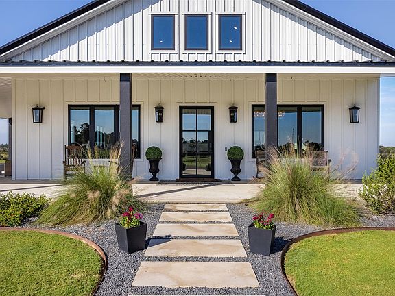 Luxury meets country charm in this 2,600+ SF high-end barndominium on 20 acres. Featuring 2 bedrooms, 2.5 baths, and a loft with TV room and built-in beds, this home is designed for comfort and style. Expansive windows, sealed concrete floors, and soaring ceilings create a bright, open feel. Outdoor living shines with huge porches, lush landscaping, and a show-stopping pool with dual tanning decks. The property is perimeter fenced with a gated entrance for privacy, all just minutes from town and a golf carts ride to the golf course!