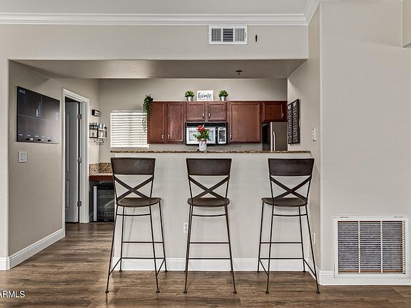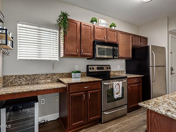 Beautiful 3 bedroom, 2 bath condo in Arpeggio Condominiums community. This end unit features vaulted ceilings, granite countertops in both the kitchen and baths with LVP luxury wood-like plank flooring throughout the entire home and ceiling fans in all bedrooms. Stainless steel appliances, reverse osmosis water filtration system and saltless water softener system installed.* Refrigerator, W/D and Wine fridge* IS included. Large covered porch area off the dining room and attached storage closet. Assigned covered parking to brave the AZ heat and plenty of guest parking at the foot of the stairs. This well-kept, gated community features a community pool, clubhouse, spa and gym. Easy access to 101, 202, Phoenix Sky Harbor Airport, ASU, Tempe Town Lake and Tempe Marketplace. A must see.