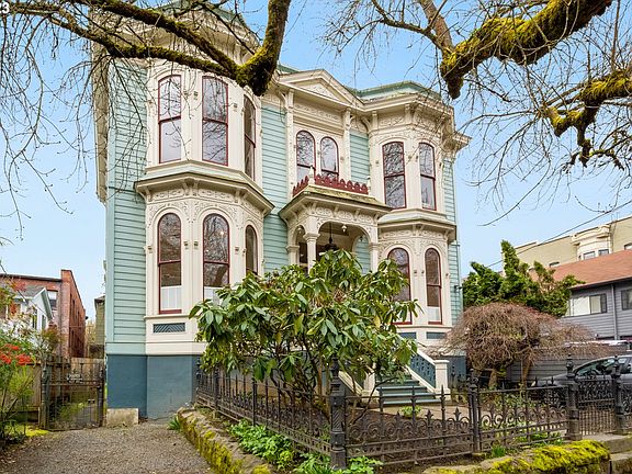 Welcome to the historic Joseph Bergman House, home to Architectural Heritage Center founders Bosco & Milligan. Built in 1885 and on the National Historic Home Registry, this classic High Victorian Italianate carries a special history and venerable legacy as the 8th oldest home in all of Portland. Nestled in the NW Alphabet District near the attractions of NW 23rd and 21st streets it recently had an extensive interior remodel, updated to suit modern living while maintaining the integrity of the many antique fixtures/hardware and original charm. Notable updates: complete home sanding/staining of original old-growth fir floors/stairs, new paint on main/upper levels, brand new upper level bathroom with claw-foot tub and newly sanded/stained/painted cabinets in kitchen/pantry. Over 4,000 square feet with soaring 12 foot ceilings with tons of natural light. 4 upper bedrooms means plenty of options for flexible living. South-facing backyard with a large lawn and patio is the perfect place to garden/entertain. 2 off-street parking spaces. This is truly a special, one of a kind place to call home.