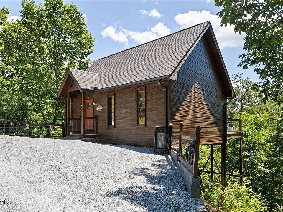 ''Blessed with a View'', Totally updated log cabin has an eye popping view of The Great Smoky Mountains. With an open floor plan and 1 full bath on the main floor, the bedroom is located on the 2nd floor in the loft. There is a deck on the bedroom level to enjoy the views and another deck on the great room perfect for barbecuing and lounging in the hot tub. Excellent rental cabin with very minimal monthly expenses. No HOA fees and your own private well.Conveniently located close to shopping, fine dining and all area attractions. It has an open floor plan and 1 full bath on the main floor.