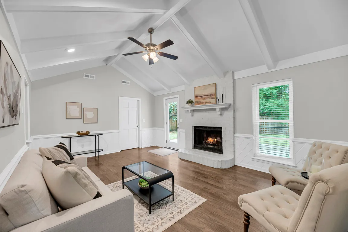 Cozy wood-burning fireplaceFire pitFreshly pressure-washed patioStainless steel appliancesSpacious backyardVaulted ceilingsGranite countertops