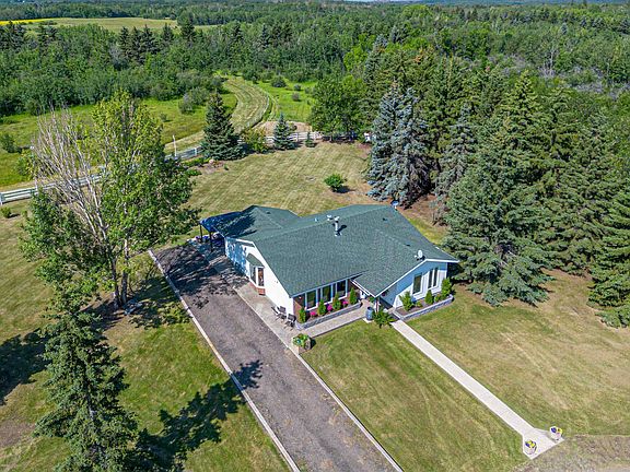 Discover this beautifully updated 1,500 sq ft home on 20 acres, just minutes from Ardrossan. Featuring 4 bedrooms and 3 bathrooms, the fully finished basement includes a salon room—easily convertible into a fifth bedroom. Recent upgrades encompass newer shingles, all-new copper wiring, updated plumbing, and fresh paint throughout. Equestrian enthusiasts will appreciate the fenced pasture, expansive track, and numerous trails, making it ideal for horses. A quadruple detached garage/shop offers ample space for vehicles and projects. This move-in-ready acreage combines modern comforts with serene country living.