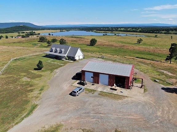 This homes most stunning features begins before you step in the doors with a wrap around porch that shows off the show casing of area mountains throughout the county from Cavanal Hill, Poteau Mt., Sugarloaf Mt, to valleys in between. 21 m/l acres. Eat-in kitchen, dining room. Spacious 3 bed, 3 baths 1 added garden jacuzzi tub in bath in bed, 1st floor. Bonus room that could be used as 4th bed. Large 3 bay shop includes a Lift with apartment in the back. Priced to sell with all it has to offer!