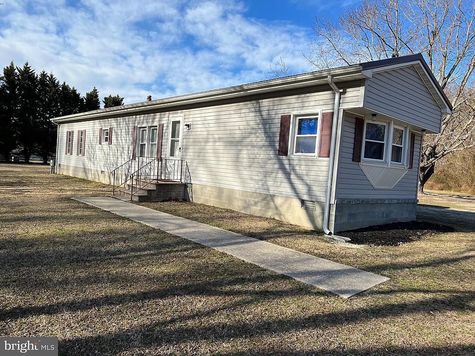 This is your perfect opportunity to own an affordable home just minutes away from Bayhealth Sussex Campus and the beaches. Three bedroom, Two bath Singlewide Mobile home on 2.17 acres. Additions in 2017: an A frame metal roof, vinyl siding and 4 Course Foundation. In October 2020, a 1,000 Gallon Full Depth Gravity Septic System was installed. This property is being sold AS IS.